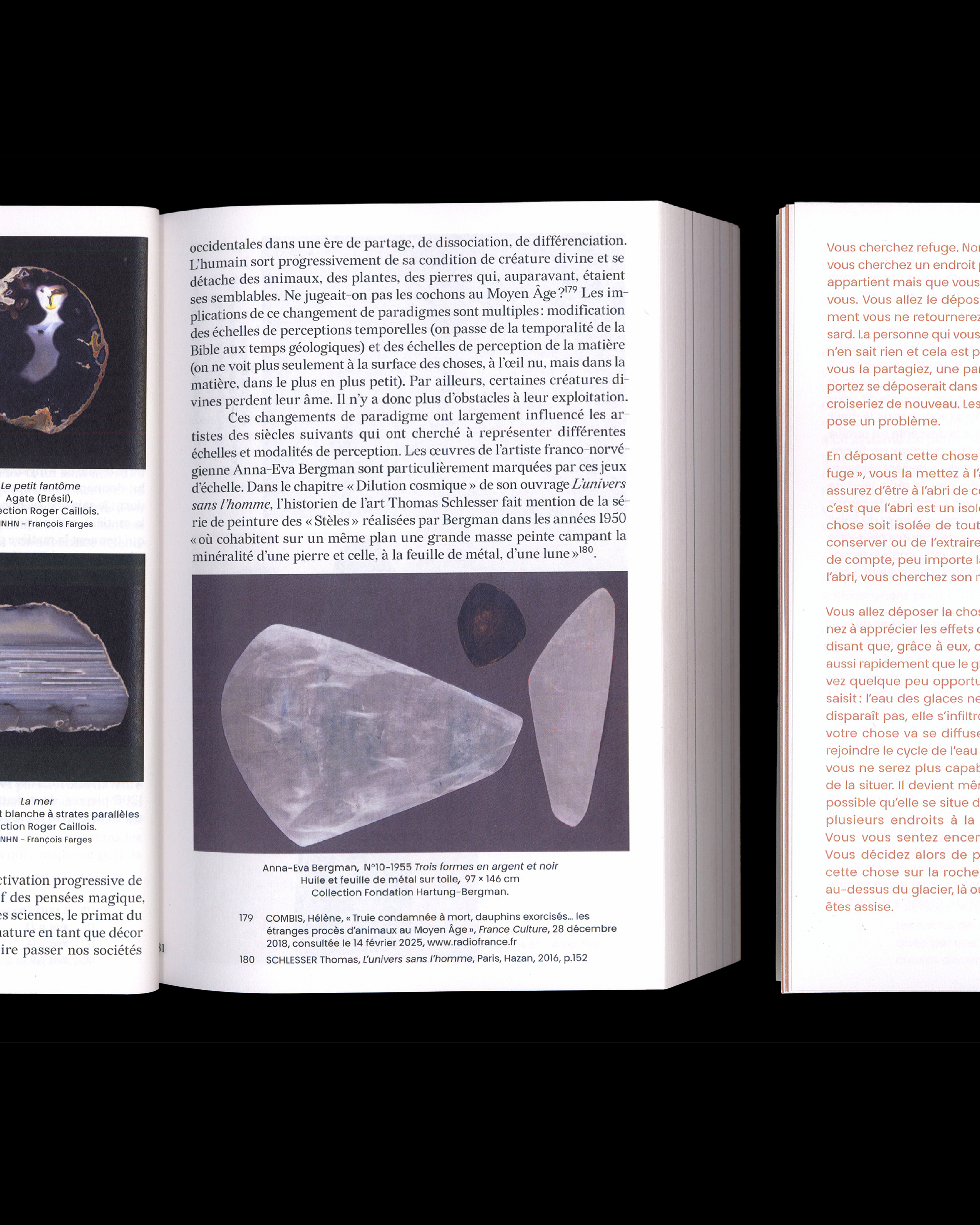 En plongeant aux confins de l’Histoire occidentale, cette enquête fait apparaître un récit singulier : celui d’attachements oubliés, réduits au silence car souvent assimilés à des pratiques occultes ou archaïques. Mais ce récit révèle aussi une persistance : à travers les siècles, un désir tenace d’attachement aux corps géologiques, que la modernité occidentale n’aura pas entièrement su faire taire.